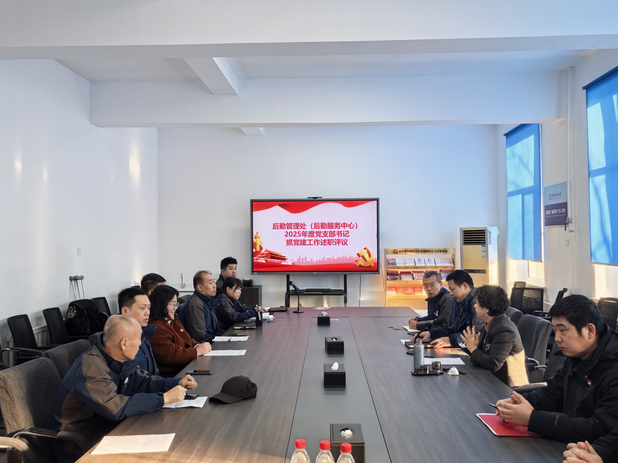 为深入贯彻落实新时代党的建设总要求和新时代党的组织路线,全面检验和提升基层党建工作质量,根据学校党委统一部署,后勤管理处(后勤服务中心)于2025年12月30日组织召开2025年度党支部书记抓党建工作述职评议会。会议由述职评议考核工作领导小组组长高群主持,领导小组副组长张德威、李强及党总支委员、各党支部委员担任评委。